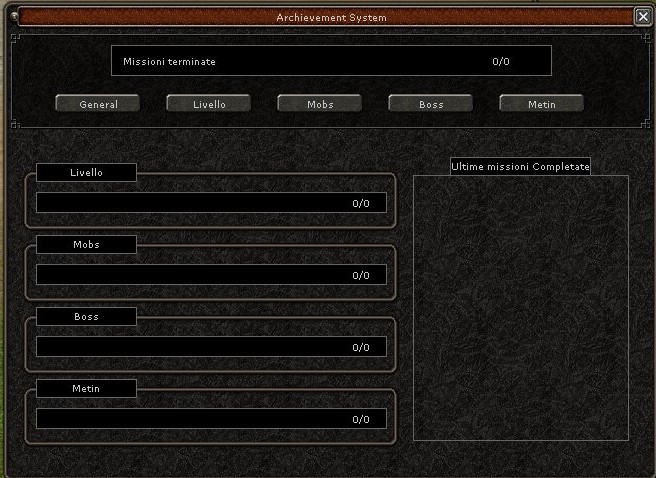 Questo system ti permette di collezionate i tuoi obiettivi ed i tuoi progressi in tutta tranquillità. Può essere collegato al system dei premi per ogni archievement raggiunto.
